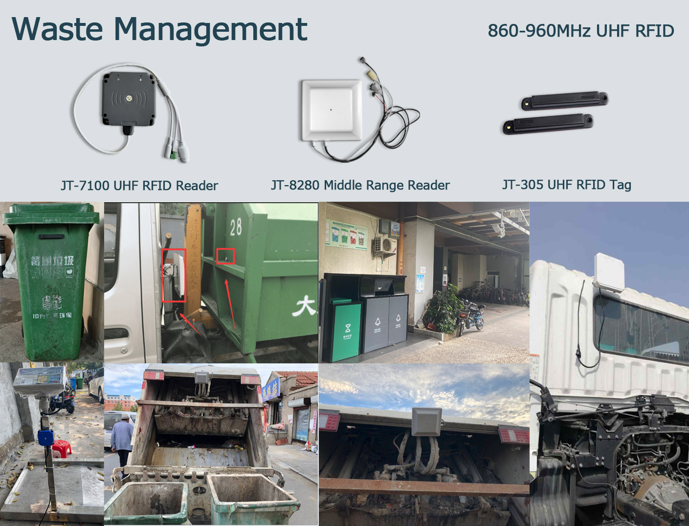 Etichetta RFID UHF da banco JT-305 in ABS, 135*21*12 mm, per la gestione dei bidoni della spazzatura.